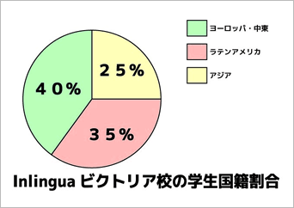 日本という島国で生活している私たちには、外国の人達と接する機会さえほとんどありませんが、英語の語学学校は、英語圏以外の国から英語を学びに来る人で構成されているため、多様な人種、国籍の人たちと出会うことができます。ただ、語学学校の中には、クラスの半分以上が日本人だったりすることも多くあり、留学しているという実感が湧きにくいこともある中で、今回の研修先となるインリンガ語学学校は、日本人学生の割合はかなり少なめで、ラテンアメリカやヨーロッパ・中東の生徒の割合が多いので、その心配はありません。
